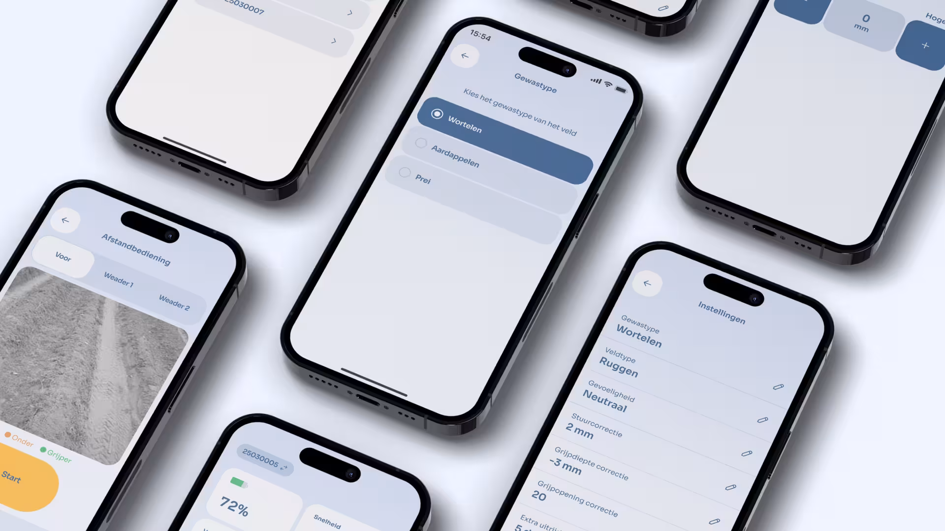 Boeren krijgen in één oogopslag inzicht in de prestaties op het veld, zoals de voortgang en batterijstatus. Zo kunnen ze direct ingrijpen wanneer dat nodig is. Door complexe technologie te vertalen naar een helder dashboard voelt het bedienen van de robot natuurlijk en eenvoudig aan. Tegelijk kunnen boeren de instellingen tot in detail configureren voor optimaal gebruik. Alles draait om vertrouwen, controle en gemak, zodat boeren zich kunnen richten op wat echt telt: een gezonde oogst.